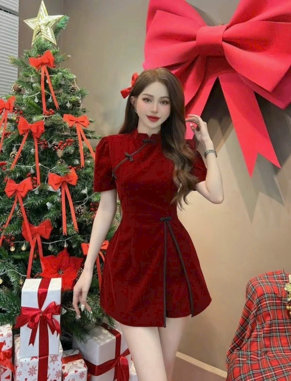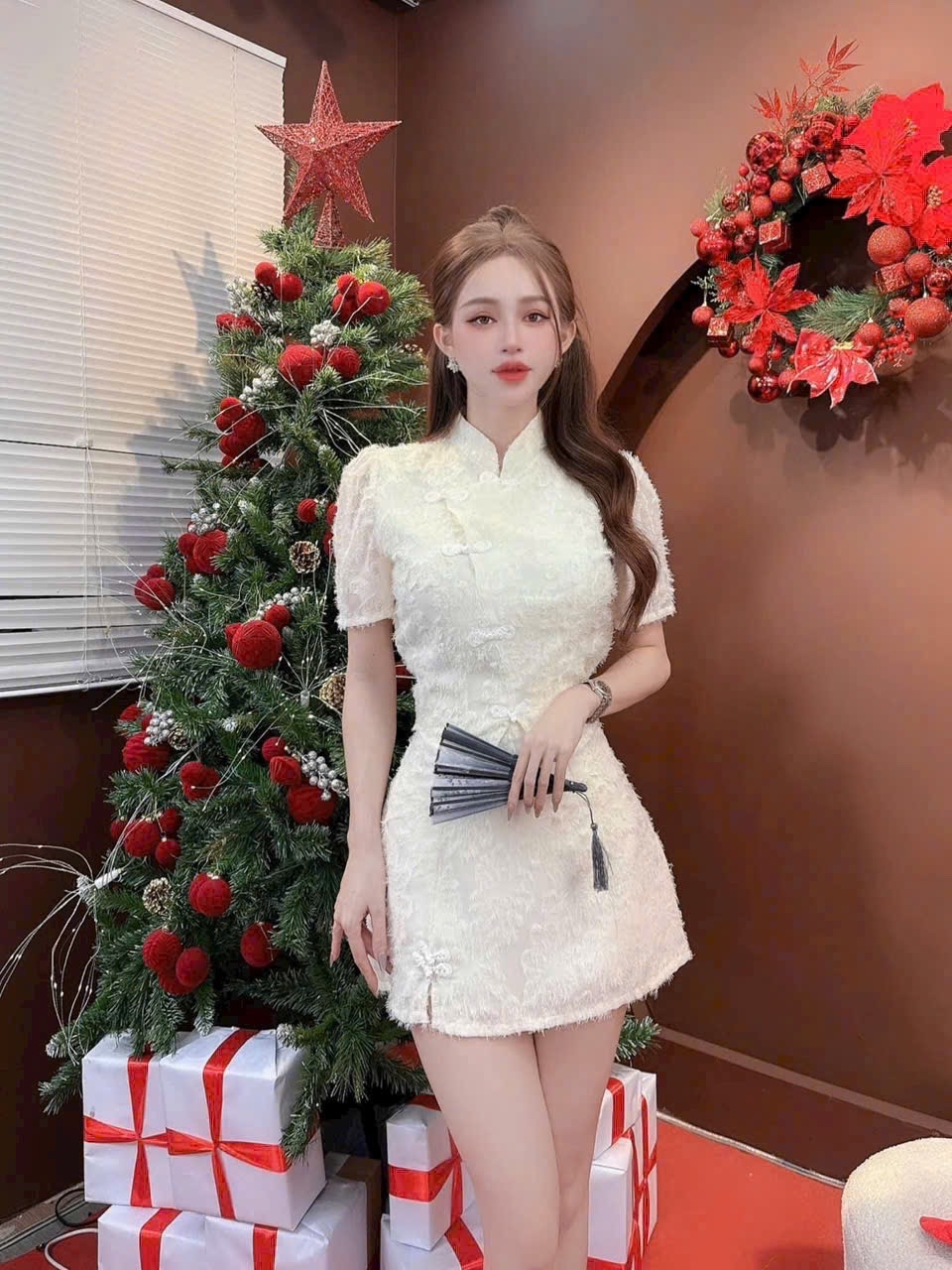 白色奧黛洋裝搭配粉紅色裙子旗袍