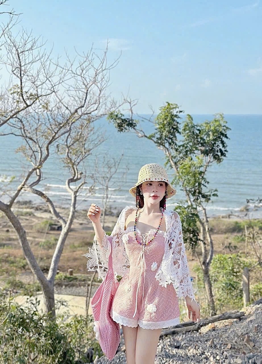 碎花優雅帶有花朵裝飾的蕾絲連身褲(不包外套