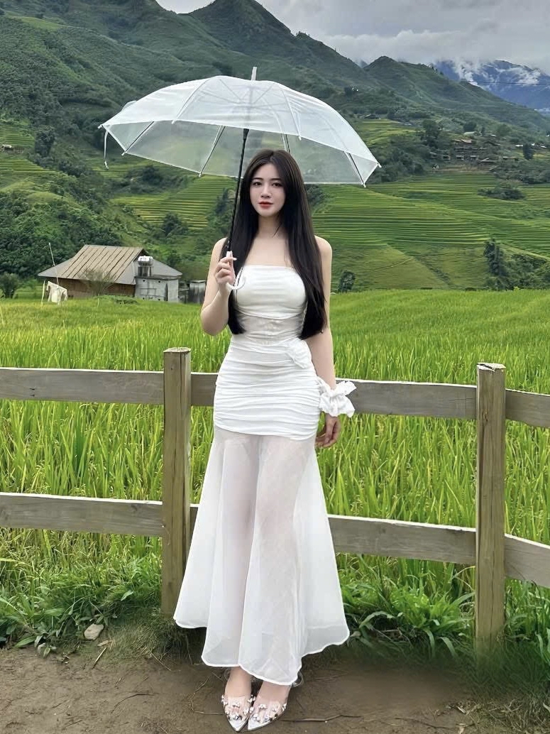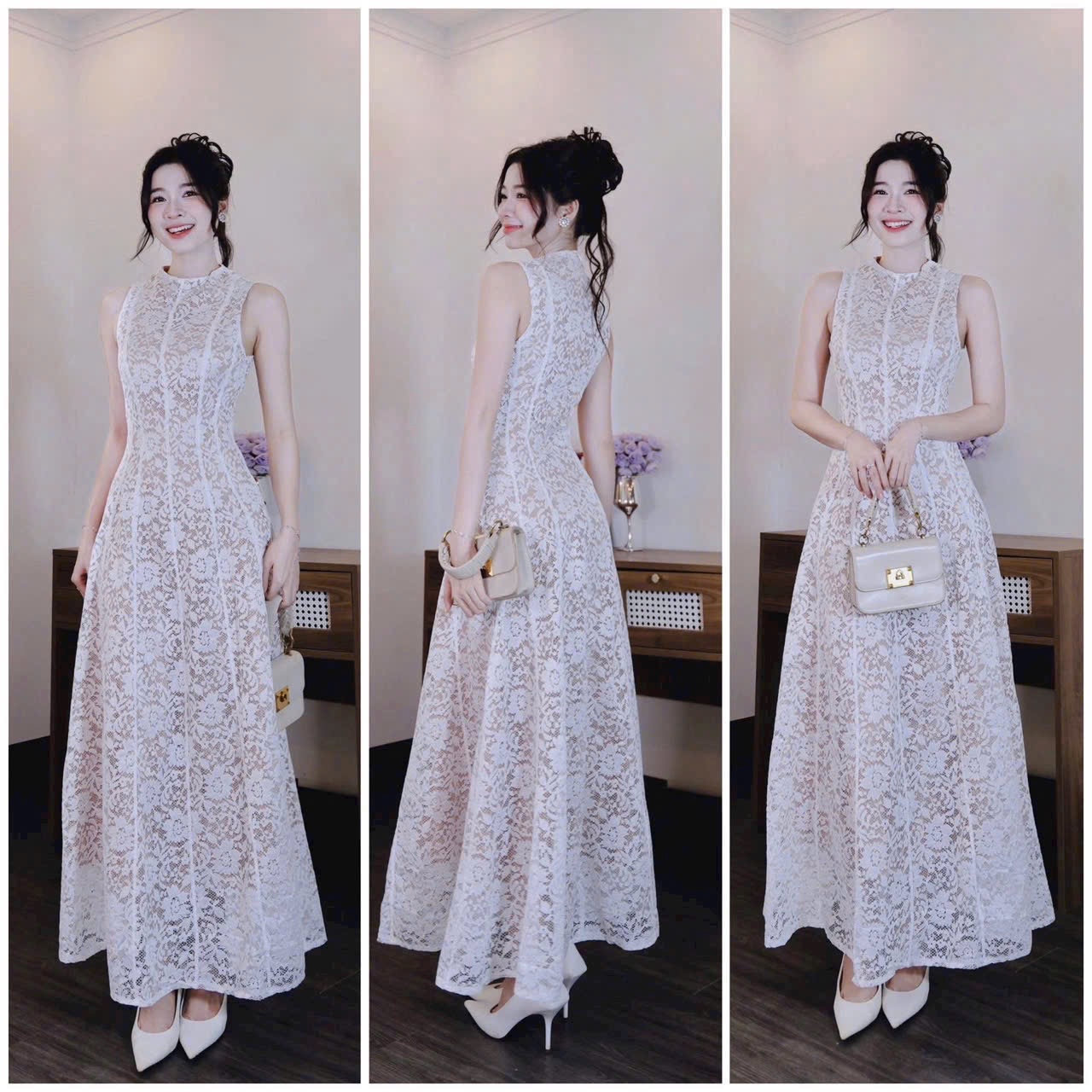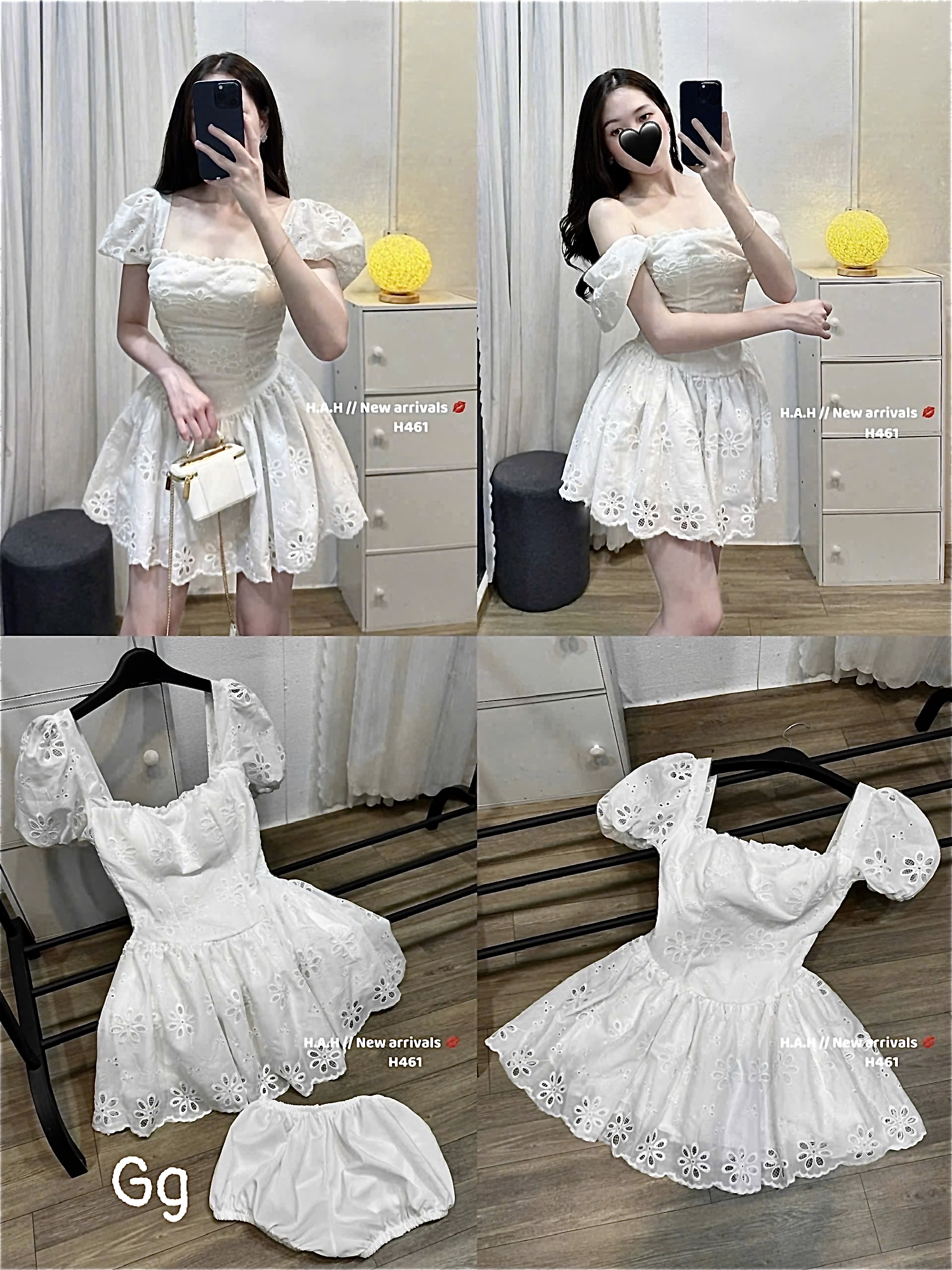 白色花卉刺繡泡泡袖洋裝(含燈籠褲)套裝