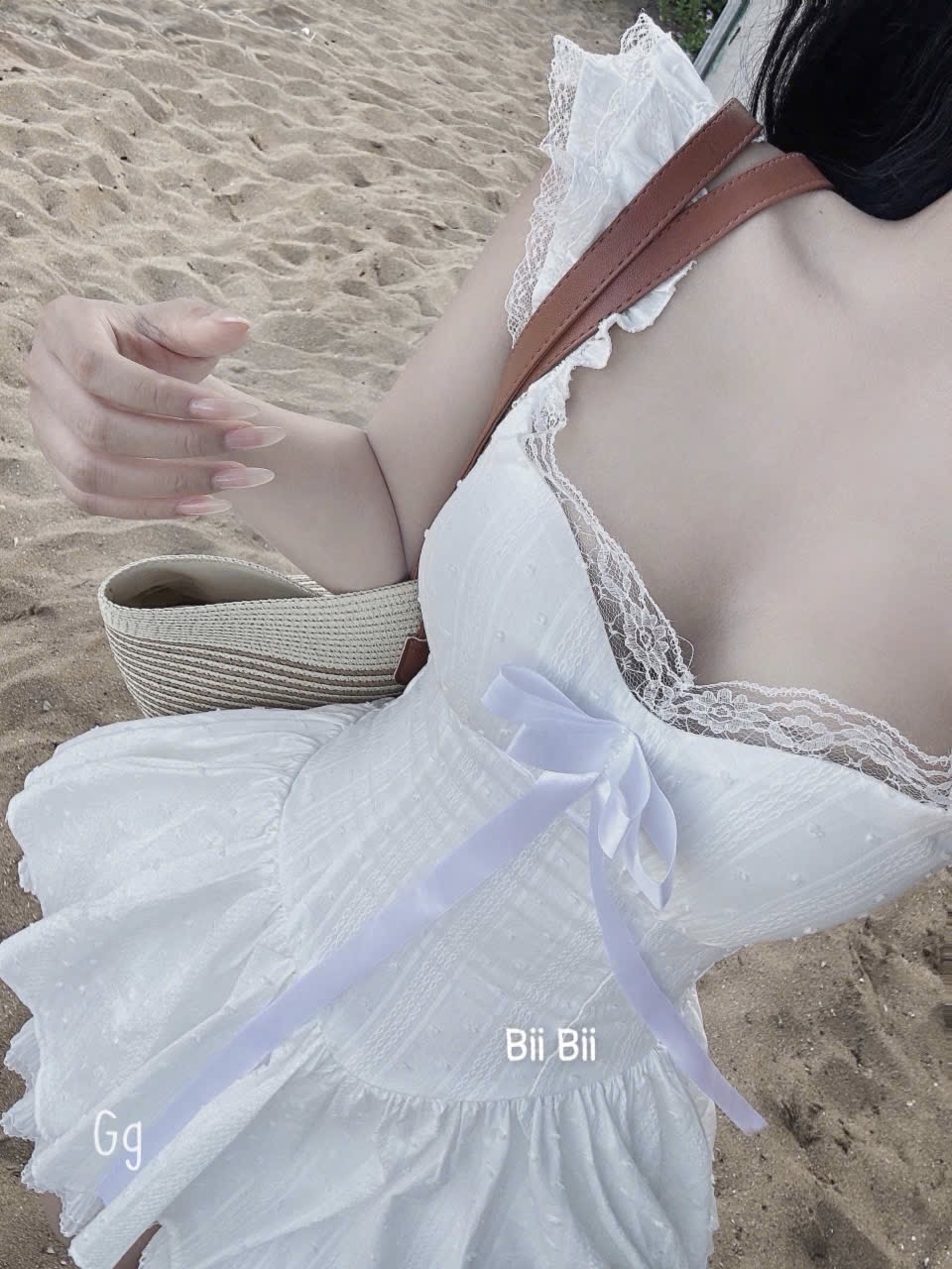 帶有蕾絲花邊和絲帶的夏裝连衣裙