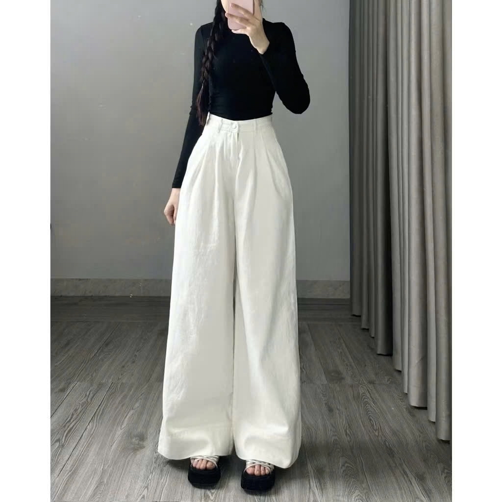 女士牛仔優雅闊腿褲 黑/白