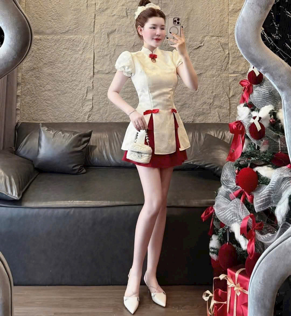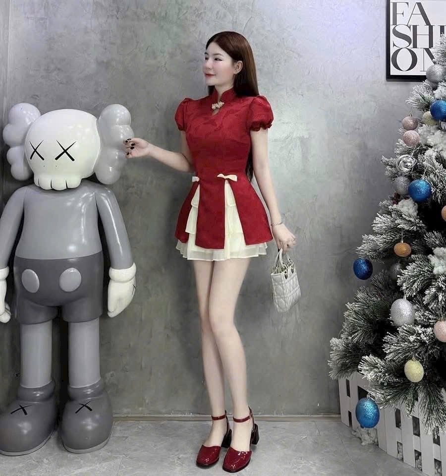 優雅的紅色點綴女士短袖旗袍