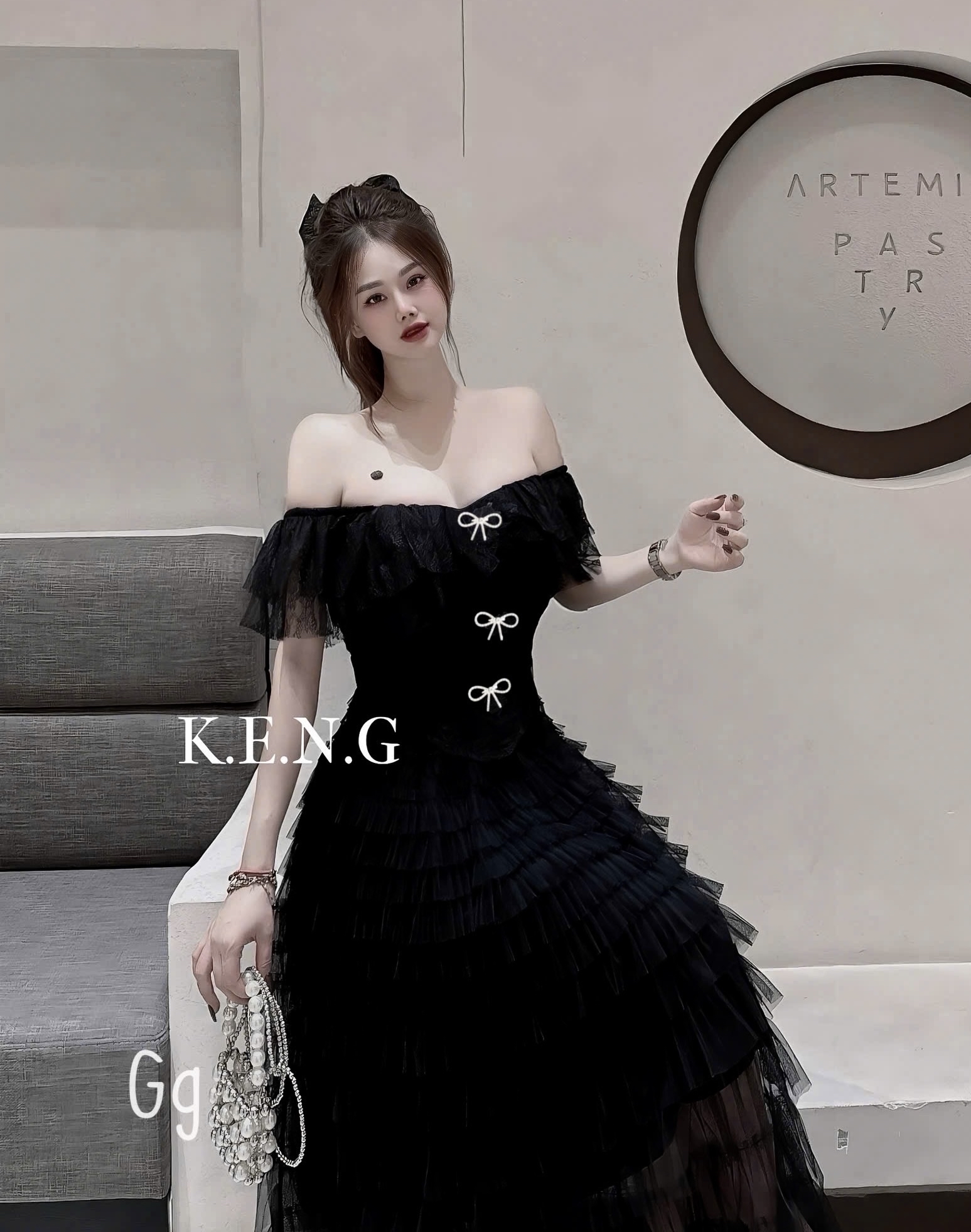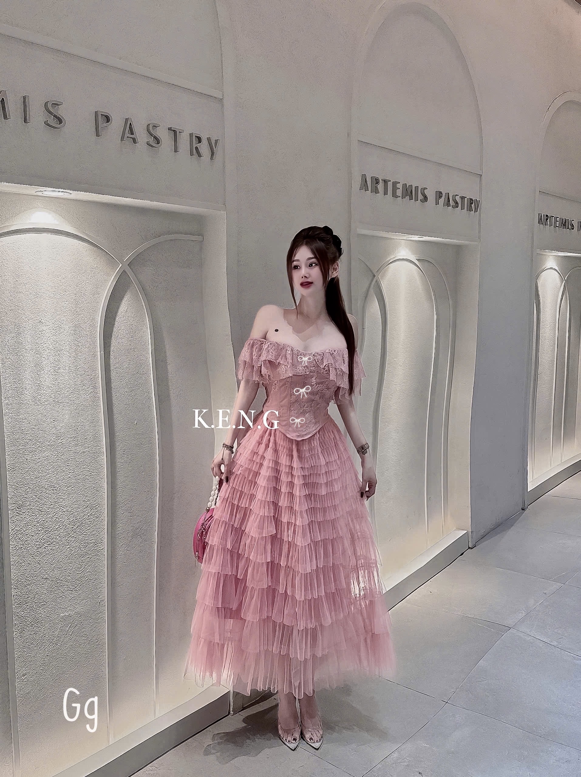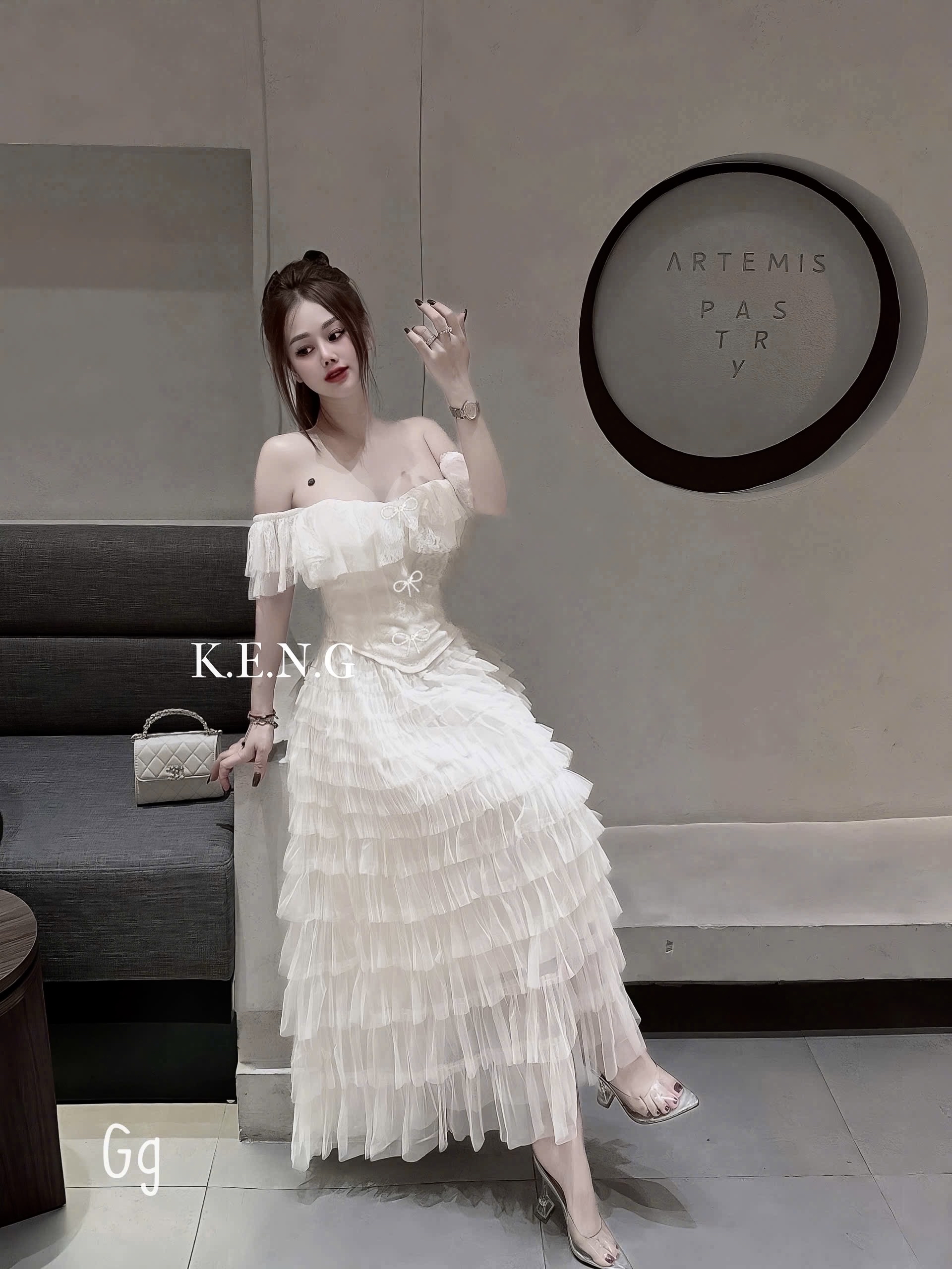 分層露肩气质連身裙两件套