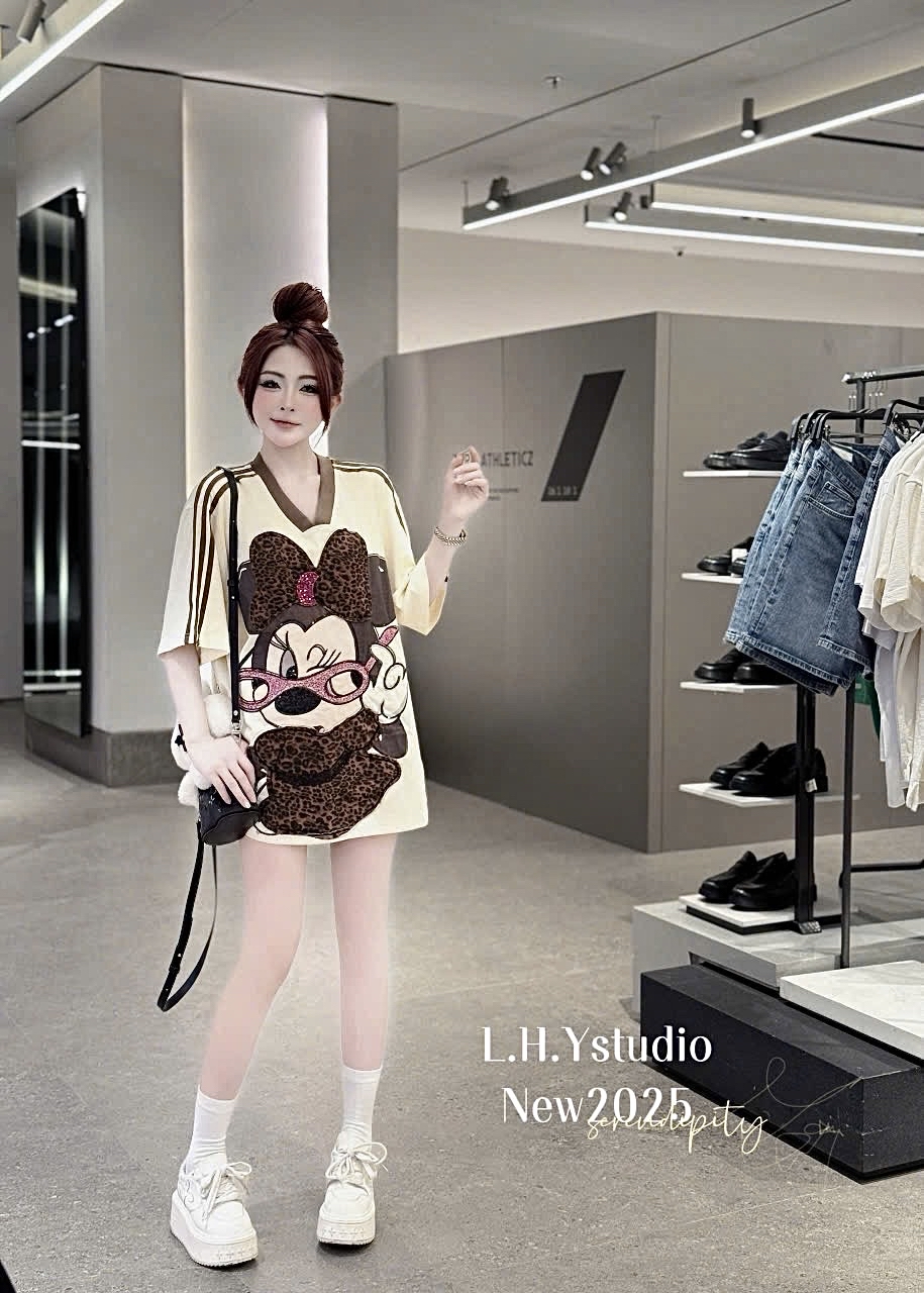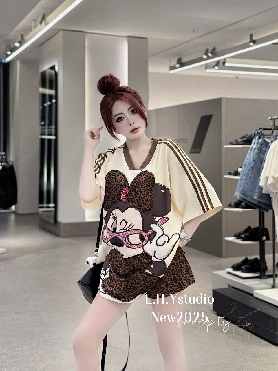 時尚豹紋米妮老鼠上衣和短褲套裝