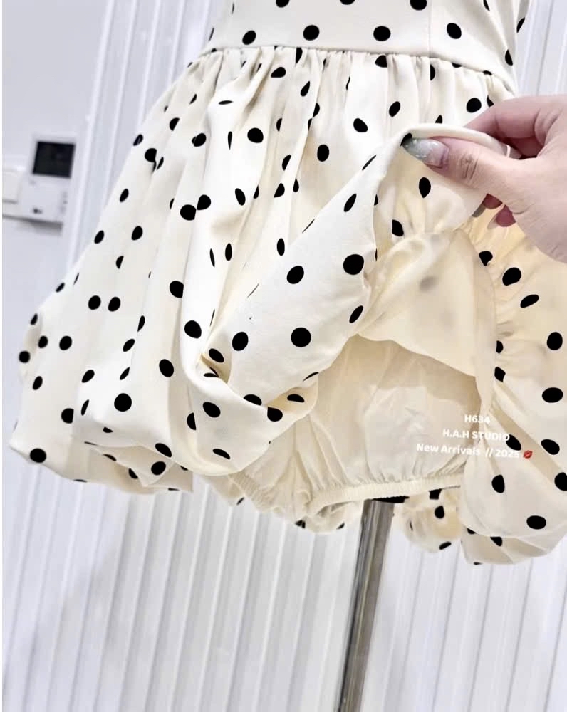 波爾卡圓點露肩迷你連身裙