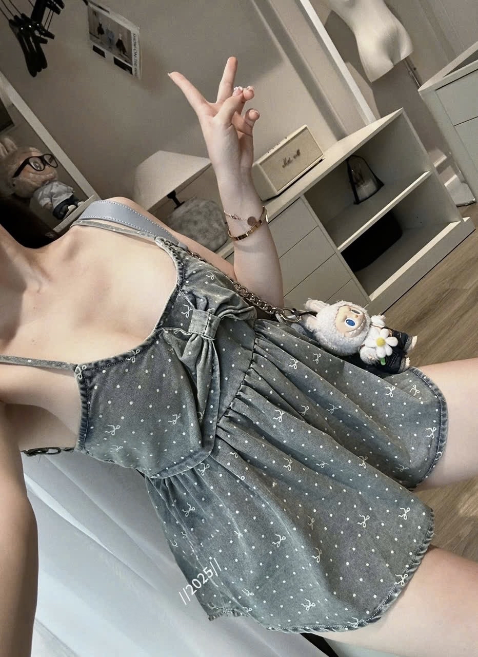 牛仔休閒圓點無袖上衣