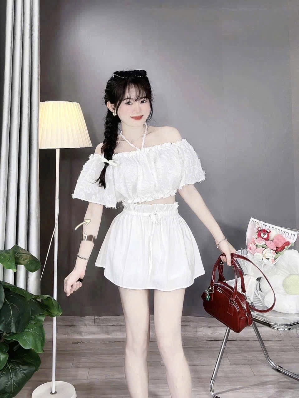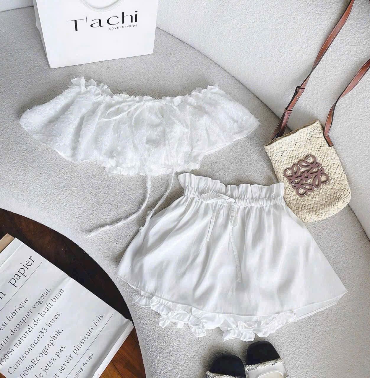 白色露肩兩件套裝