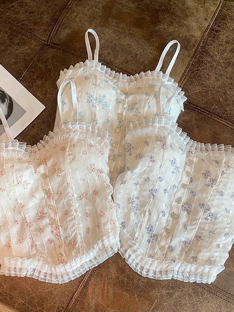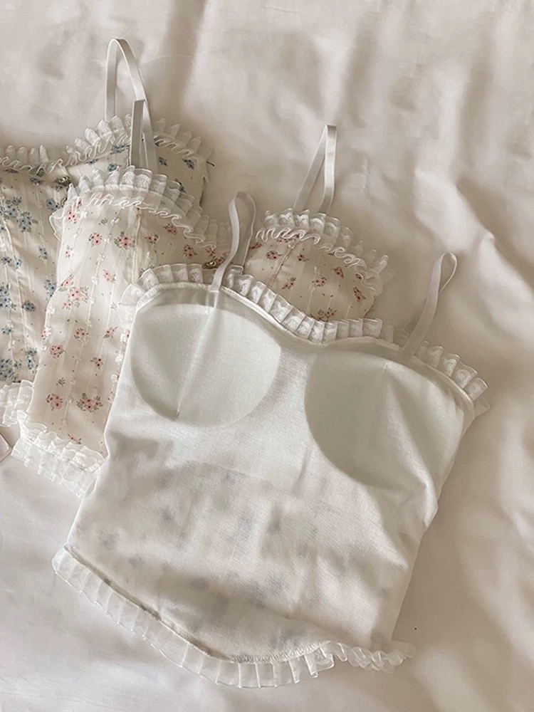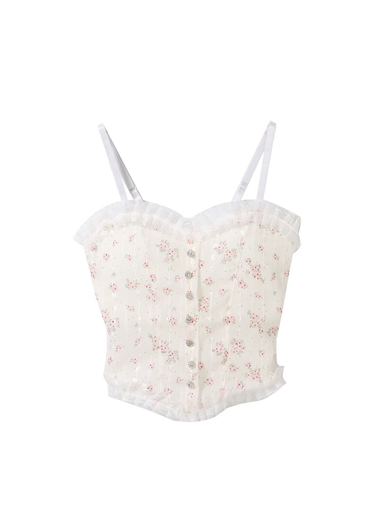 花卉蕾絲邊吊帶背心