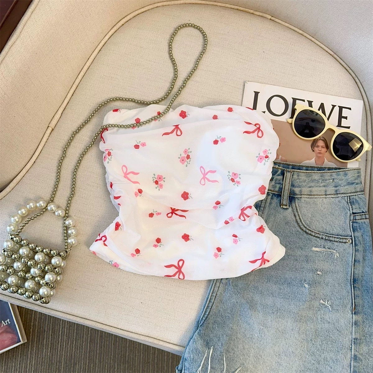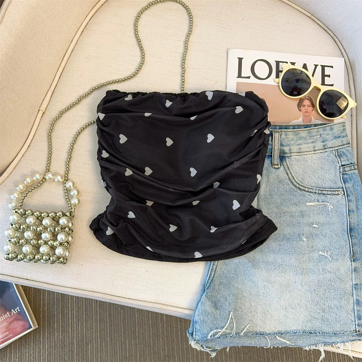 蝴蝶结爱心抹胸上衣