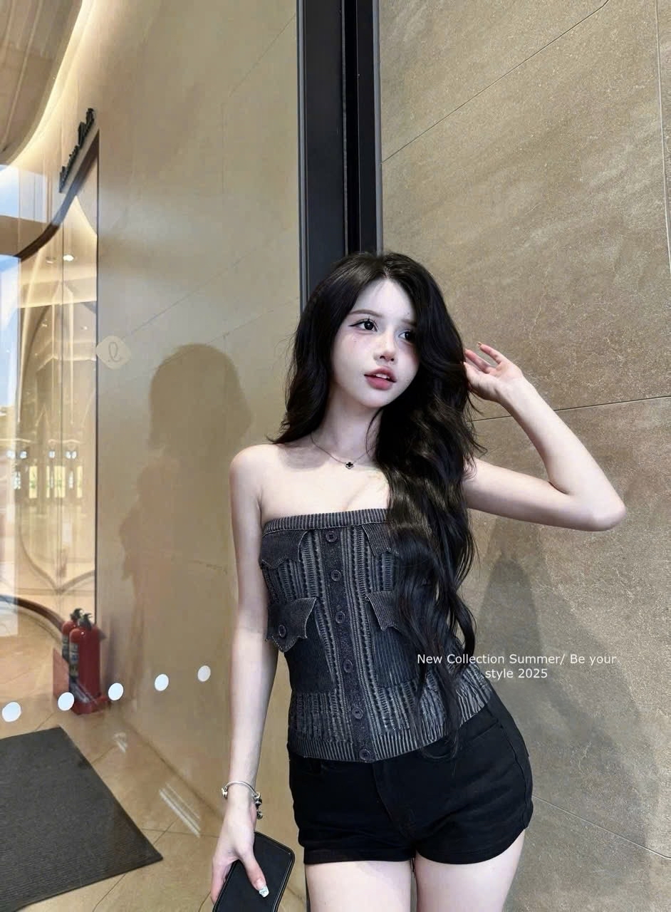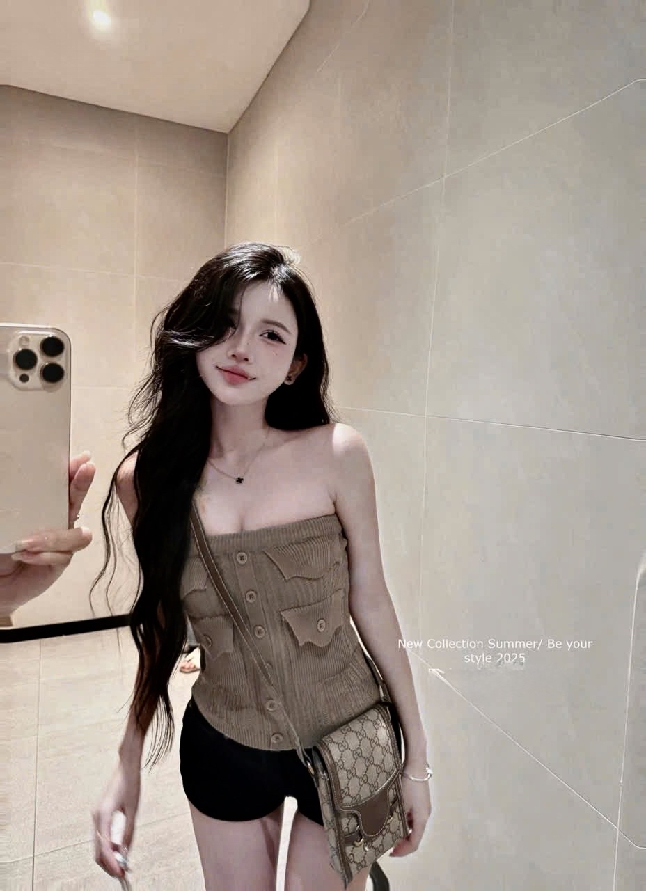 附口袋抹胸针织
