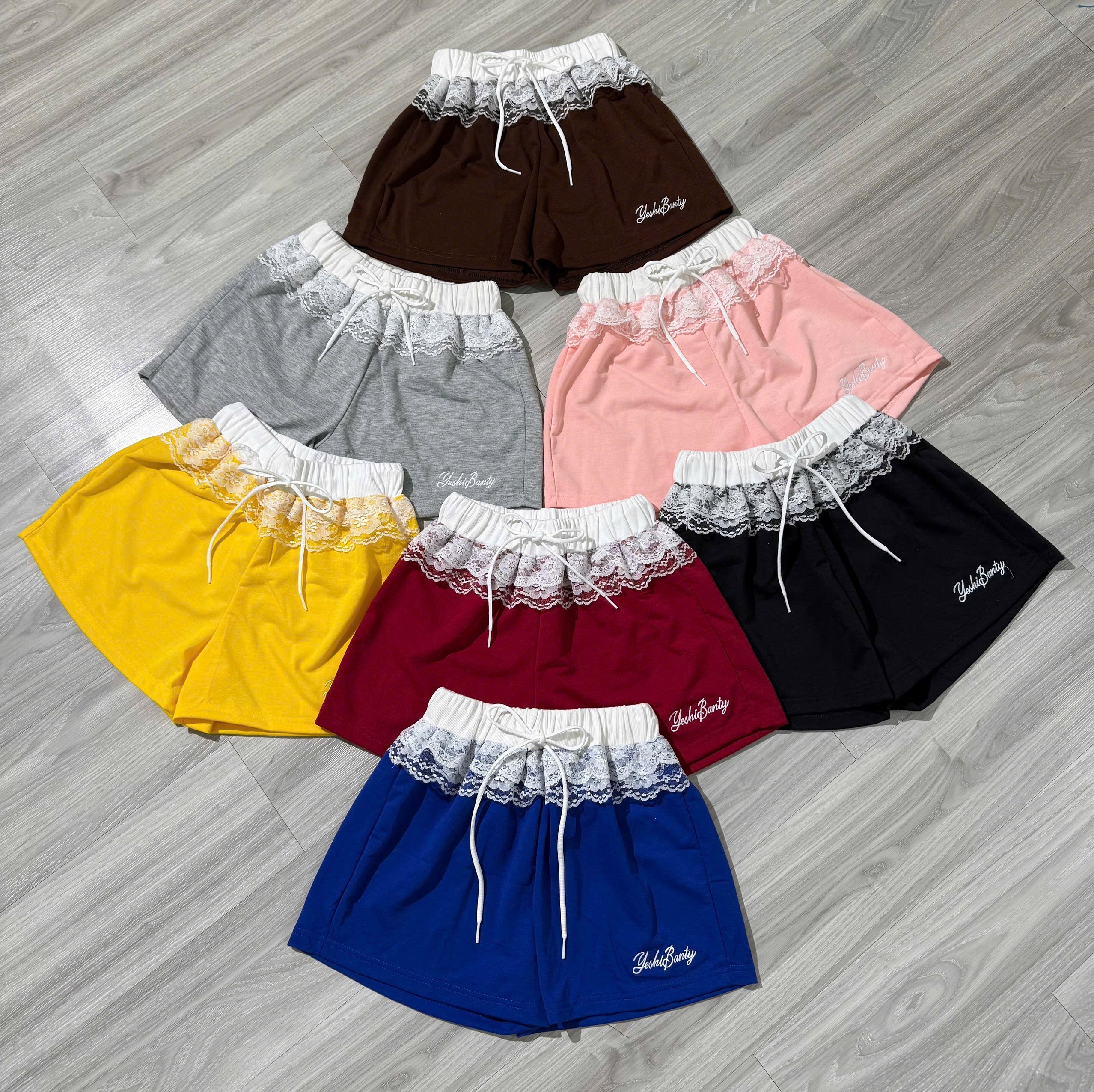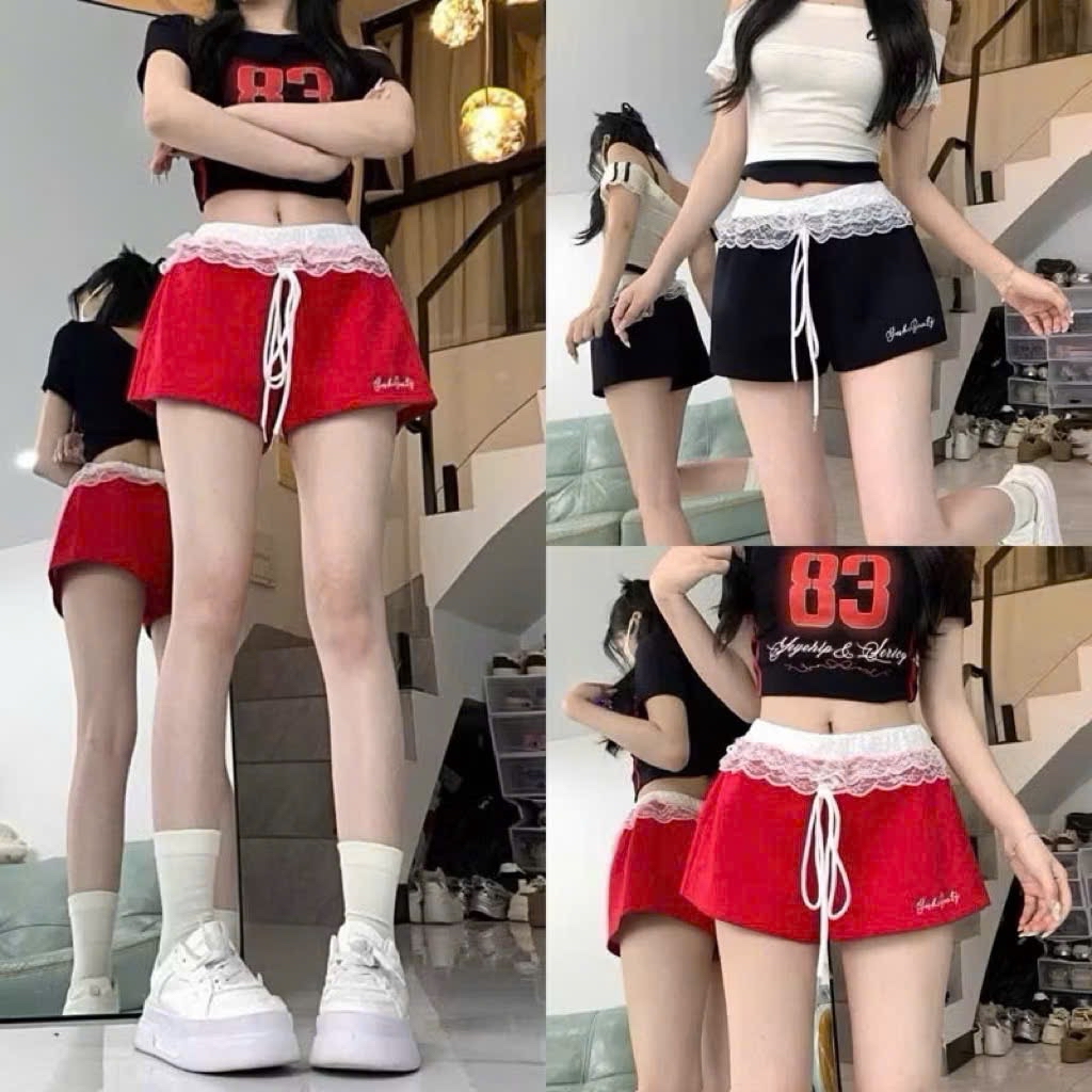 高腰卡哇伊風荷葉邊蕾絲邊抽繩短褲