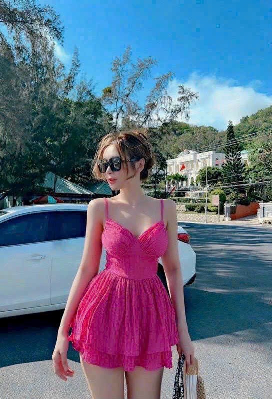 黑色細肩帶褶皺分層荷葉邊下擺連身裙