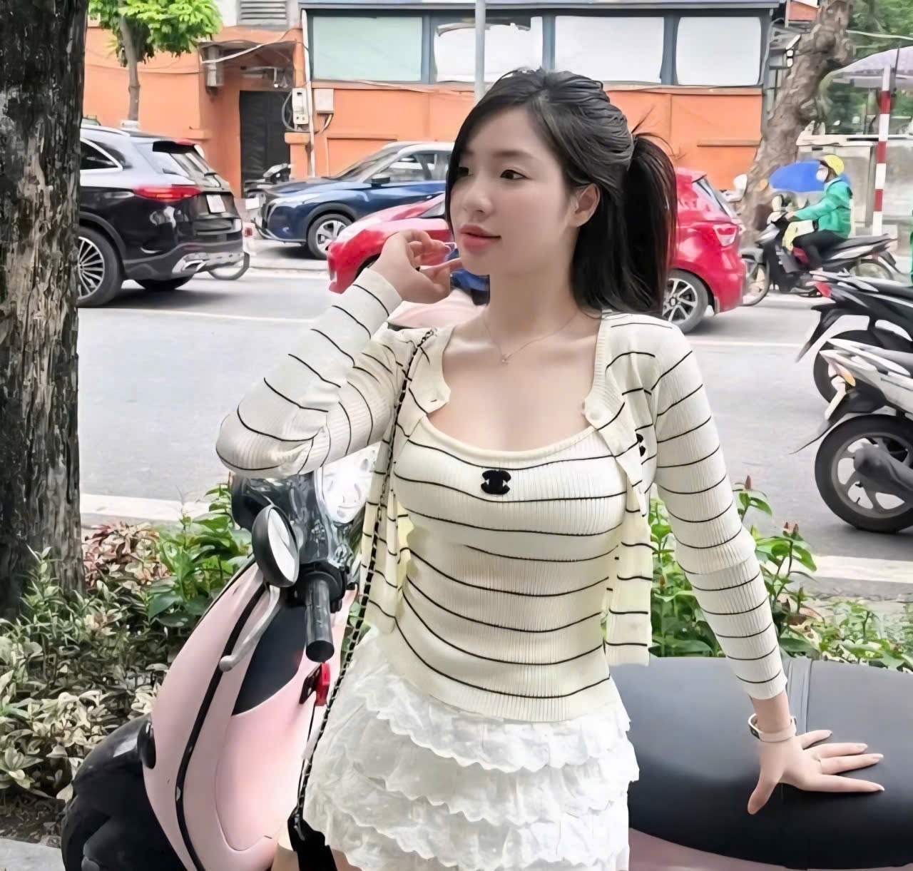 波爾卡圓點蕾絲邊上衣搭配黑色裙子两件套